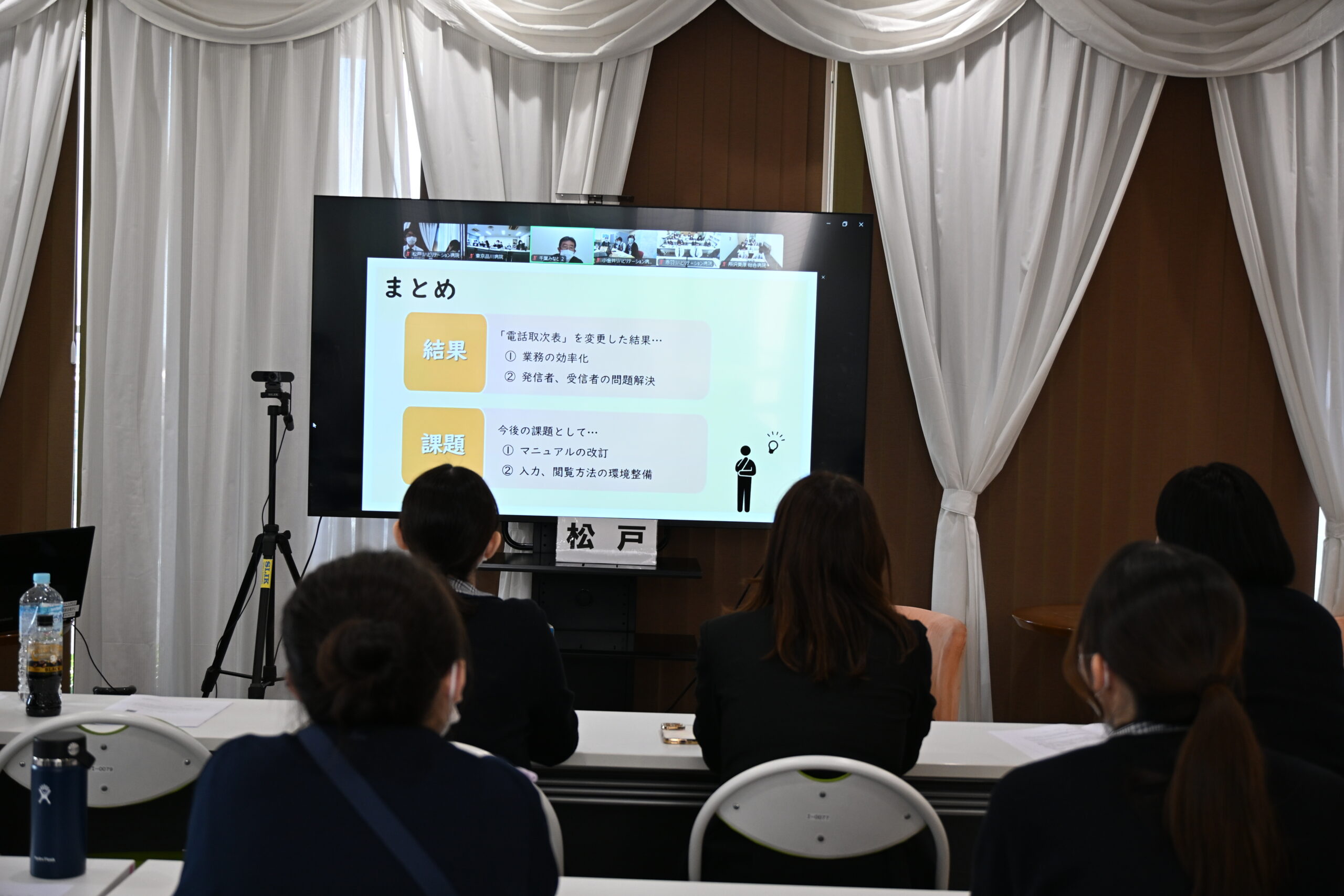 HOME お知らせ一覧 TQM発表会へ参加しました 2025.12.10 お知らせ TQM発表会へ参加しました 第5回関東カマチグループ事務部TQM発表大会に参加しました。 当院では「外線電話の取次ぎの効率化」について取り組み、電話取次表のシステム変更やマニュアルの作成を行いました。 その結果、以前よりも業務の効率が向上したことを実感しています。今回の活動で課題点も見つかったため改善に向けて取り組みを続けていきたいと考えています。 また他病院の発表もとても勉強になり、良い取り組みは当院でも導入し、より業務が円滑に進むよう努めたいと思います。 お知らせ一覧へ 相談窓口 入院案内